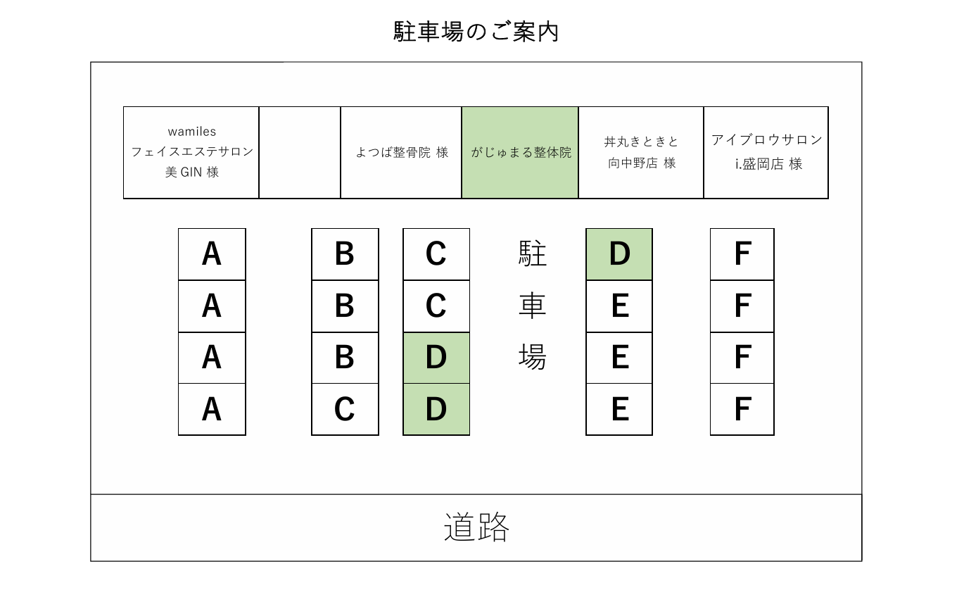 がじゅまる整体院 盛岡向中野院の指定駐車場について